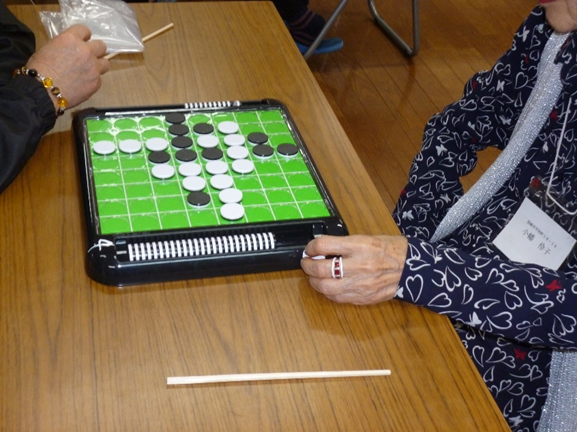 最近、新型コロナウィルスについて、世界各地で感染拡大しています。 石けんによる手洗いや手指消毒用アルコールによる消毒などを行い 混雑した場所を避けてください。 ピースサロンのオセロ 更新日:2019年7月6日 ピースサロンでオセロに取り組みました。なかなか好評でした。これは、日本で最高齢者の「田中力子」さんが好まれているそうなので、取り組みました。3人が一つのオセロに取り組むもので、3人中1人が審判です。 黒・白の合計で最後判断します。いい脳トレになります。 -ピースサロン